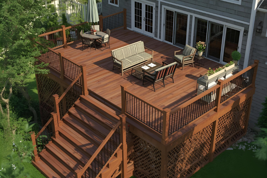 Our commitment to quality and customer satisfaction means that when you choose us for your deck project, you’re choosing a team that prioritizes durability, aesthetics, and your unique vision for your outdoor space. Let us help you transform your outdoor living area into a personal retreat that you can enjoy for years to come, meticulously crafted with premium wood options known for their superior strength and natural resistance to decay.